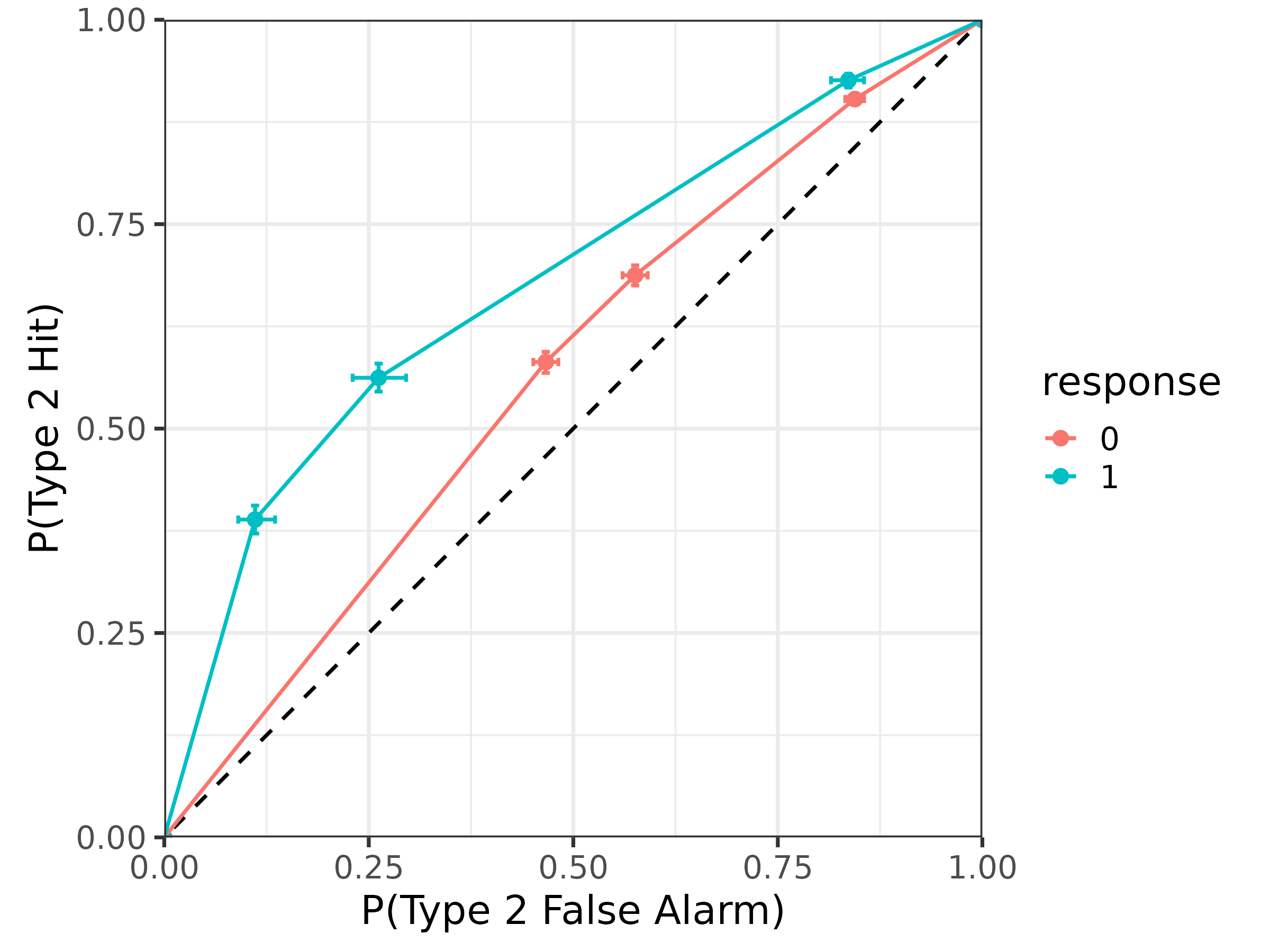 Looking at the pseudo-type 1 ROC, we can see that the